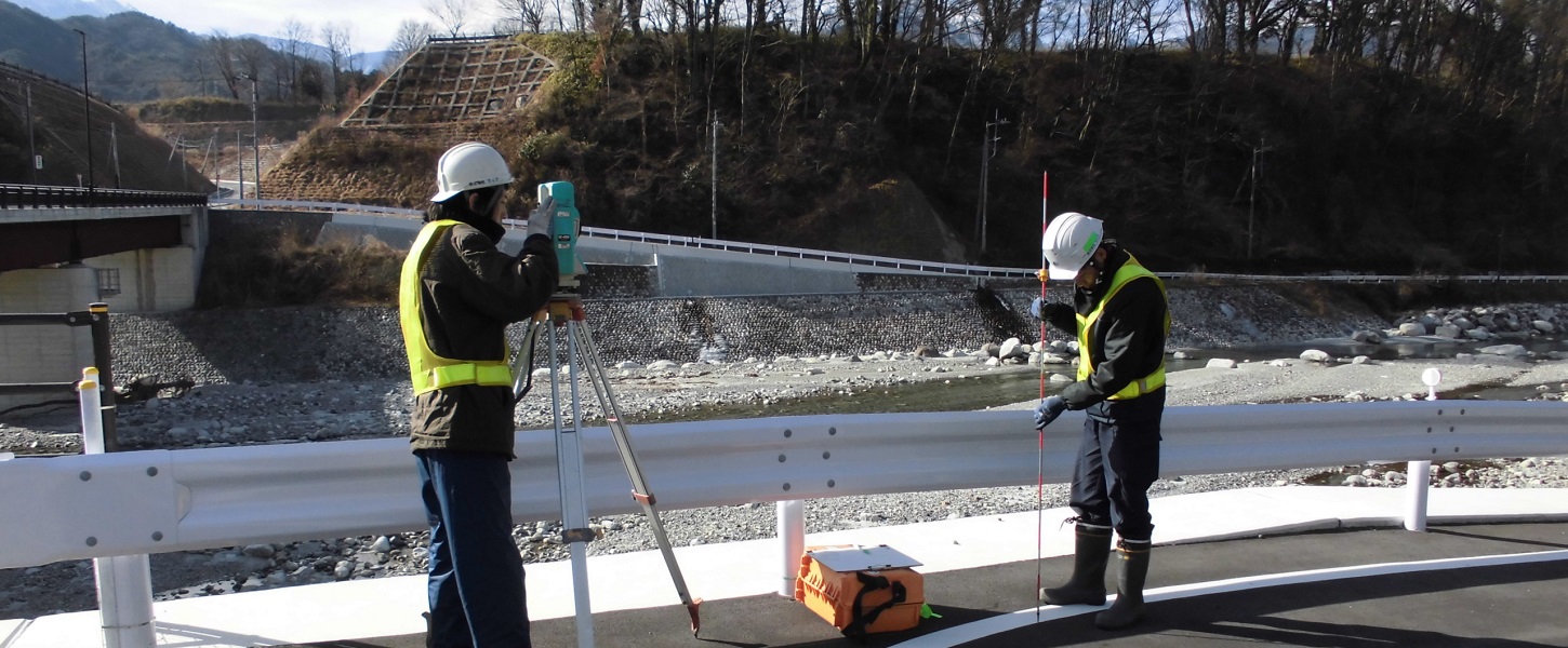 公共測量においても、これまで培ってきた技術力と現場対応力を活かし、確かな品質でお応えします。公共測量とは、道路や橋、上下水道などの公共事業を計画・実施する際に最初に行われる重要な測量業務です。